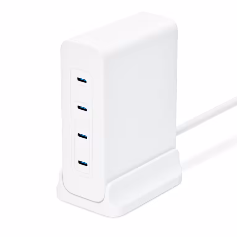 Anker Charger (240W 4 Port) high-power charger provides robust charging, with a single port that delivers up to 140W, enabling full-speed charging for all your Apple devices. Its smooth, skin-friendly finish ensures it feels good in your hands, making it a favorite among Apple Device offerings. The charger sports a shell white hue and minimalist design, with soft curves that make it both attractive and practical for desk use.
