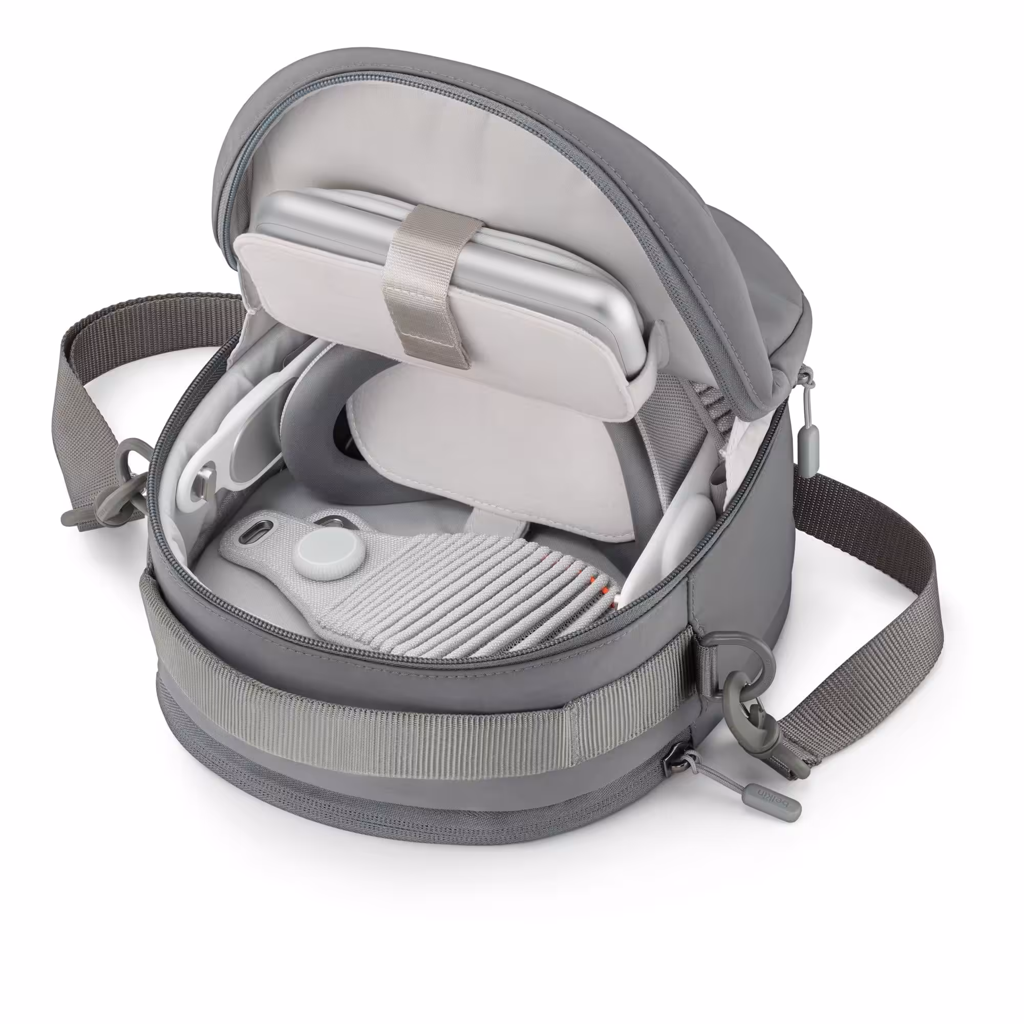 Belkin Travel Bag for Apple Vision Pro is compact and versatile Belkin Travel Bag ensures your Apple Vision Pro and accessories are safe, organized and ready for any adventure. With thoughtful features like a cushioned lens pillow, a versatile carrying strap, and ample storage, this bag makes transporting your Apple Vision Pro headset effortless and secure.