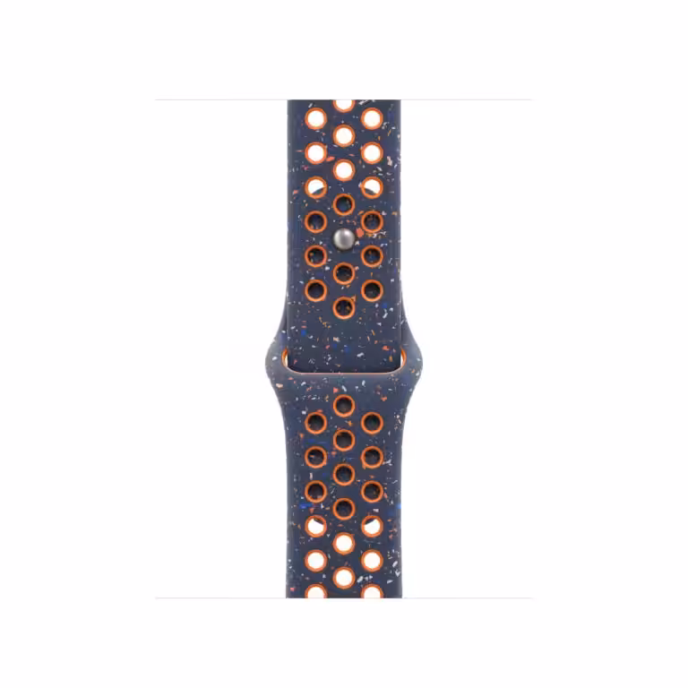 Nike Sport Band is made from a custom high-performance fluoroelastomer with compression-molded perforations for breathability, the Nike Band is durable and strong, yet surprisingly soft. The smooth, dense material drapes elegantly across your wrist and feels comfortable next to your skin. An innovative pin-and-tuck closure ensures a clean fit.