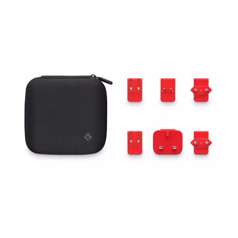 Convenient, interchangeable adapters for easy, compact travel.