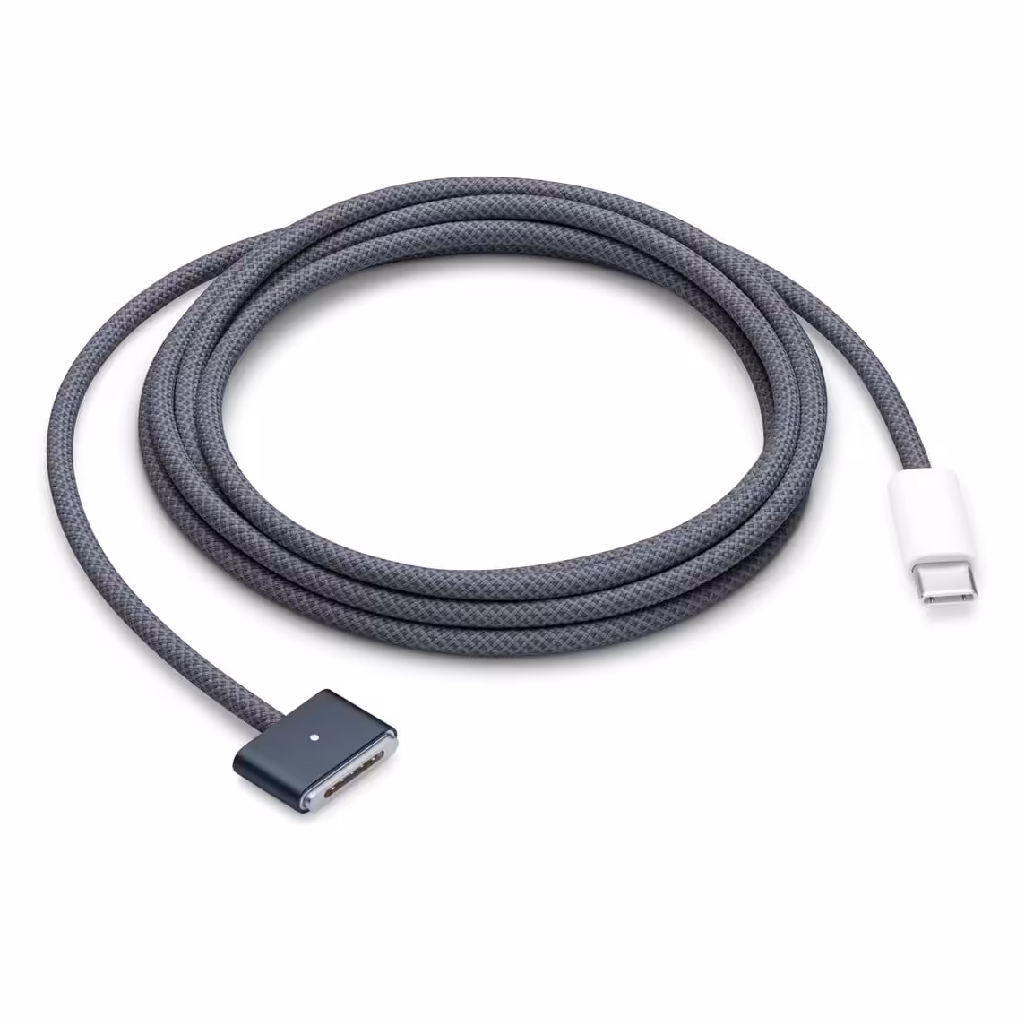 USB-C to MagSafe 3 Cable (2 m) features a magnetic MagSafe 3 connector that helps guide the plug to the charging port of your Mac notebook. Pair it with a compatible USB-C power adapter to conveniently charge your notebook from a wall outlet and take advantage of fast-charging capabilities. The magnetic connection is strong enough to resist most unintended disconnects, but if someone trips on the cable, it releases so your Mac notebook stays put. An LED turns amber when the battery is charging and green when it’s fully charged. Made with a woven design for long-lasting durability.